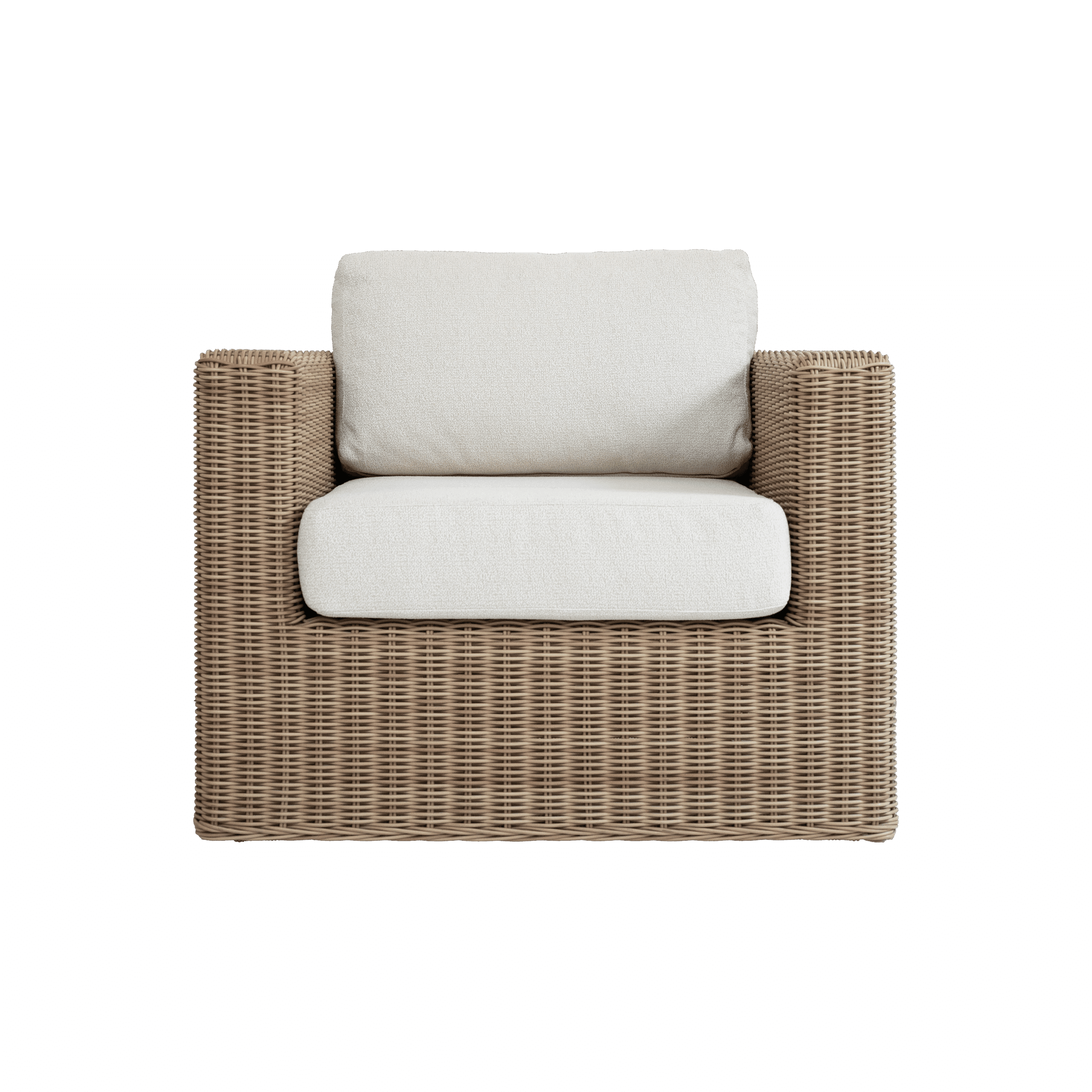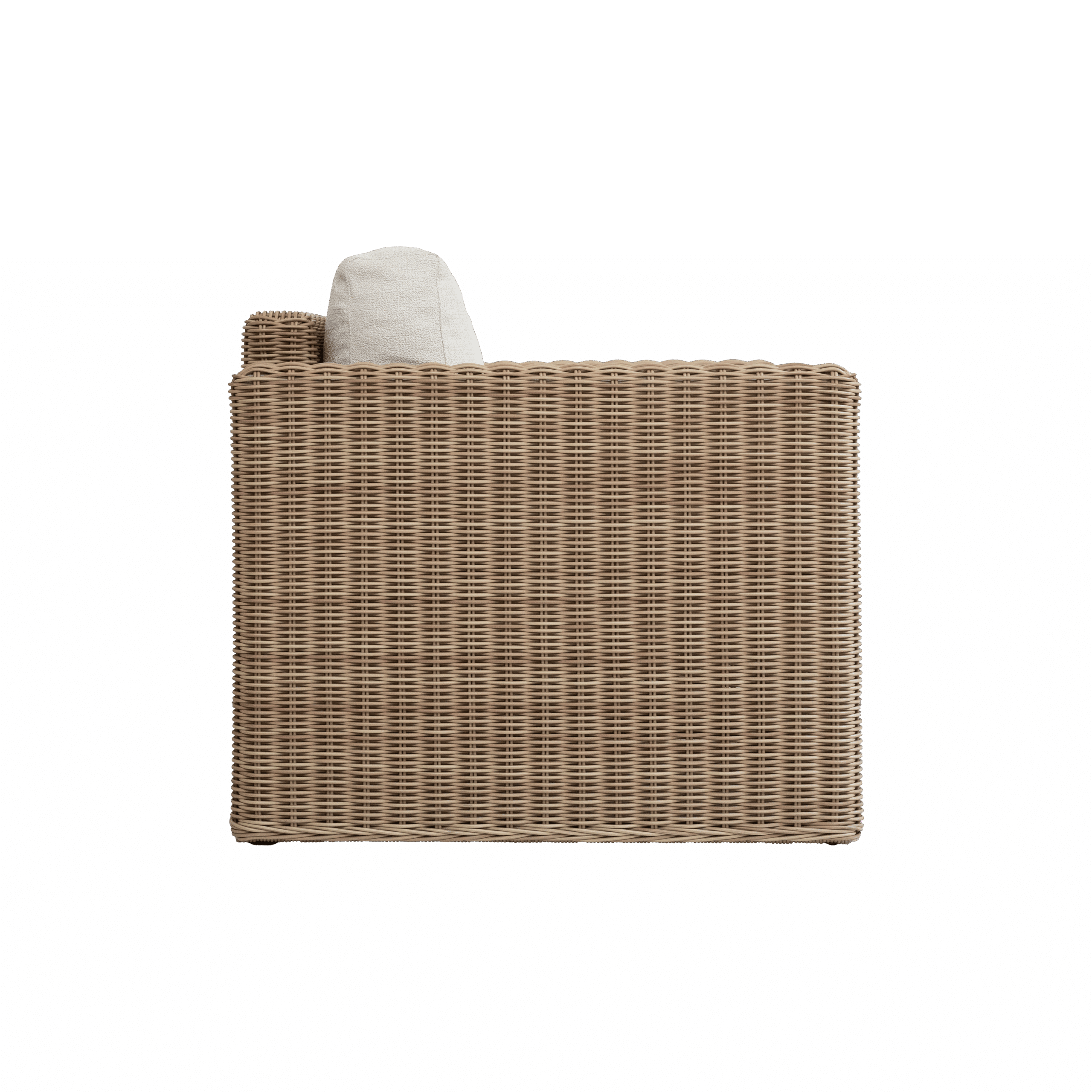 Dimensions: W980 X D900 X H690 SH490mm Material: Synthetic Weave Colour: Haze Sandy Fabric: Lens Seasand Origin: Import
