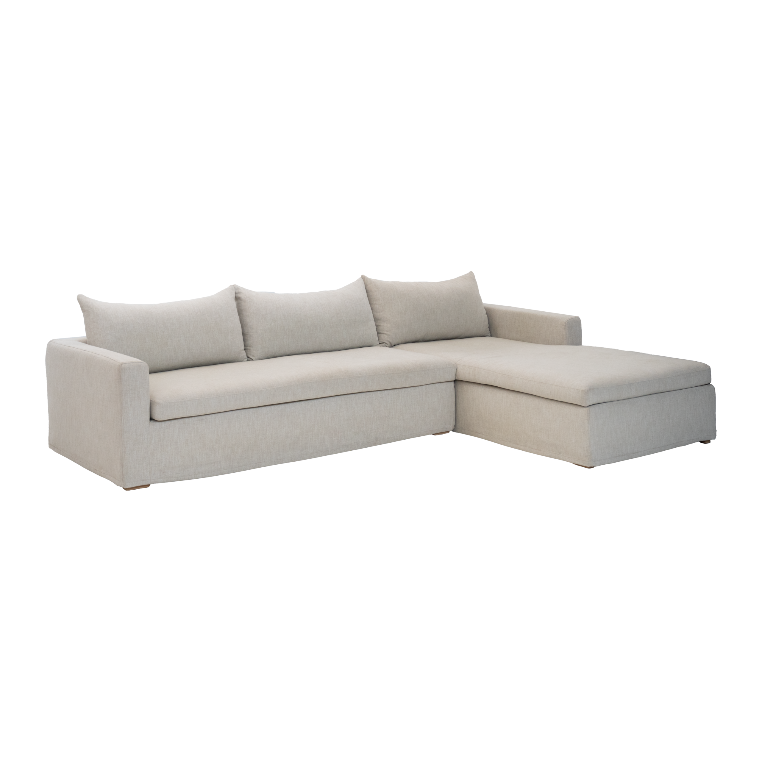 The Riviera Collection is made up of a series of contemporary slipcovered pieces. Available in sofas, modular sofas, armchairs and ottomans. Sizes are customisable and a selection of neutral fabrics is available to choose from.