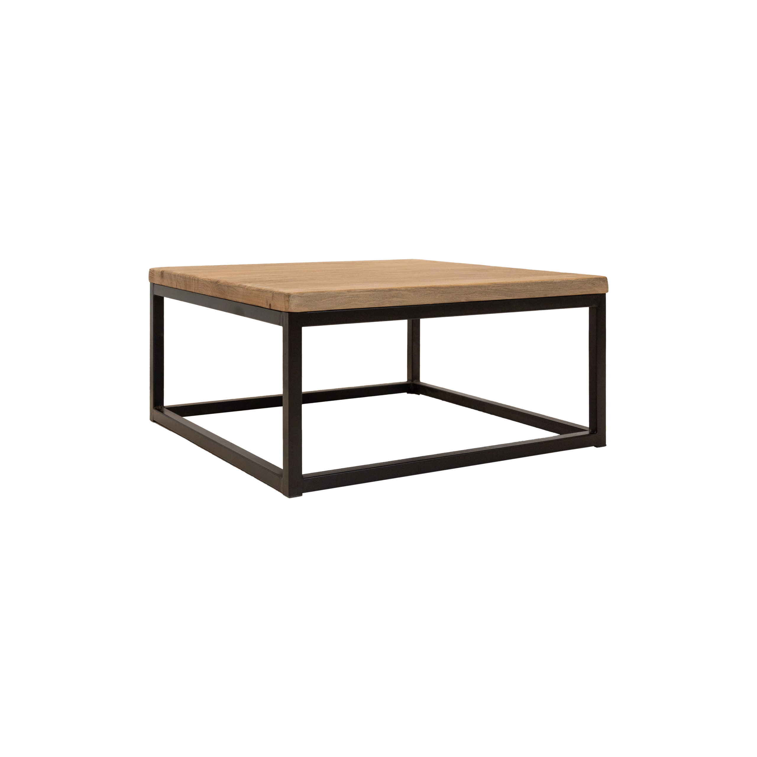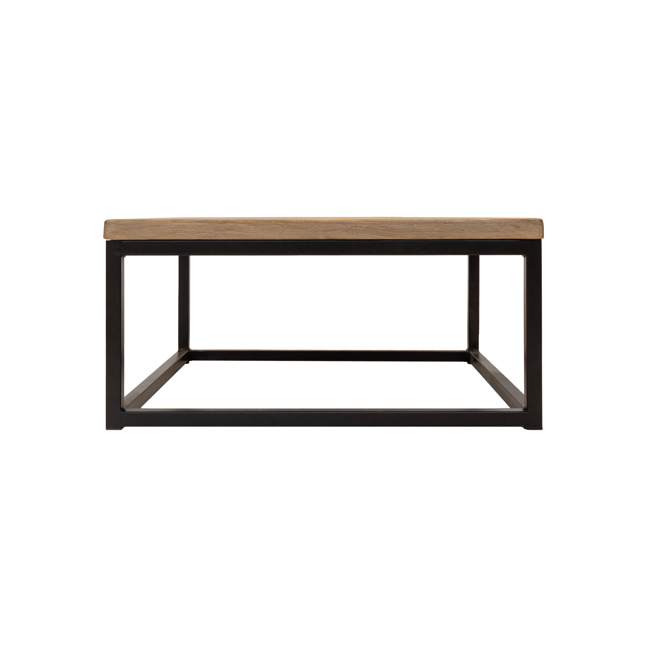 Dimensions: L850 x W850 x H400 mm Material: Black metal frame/elm wood top Origin: Import