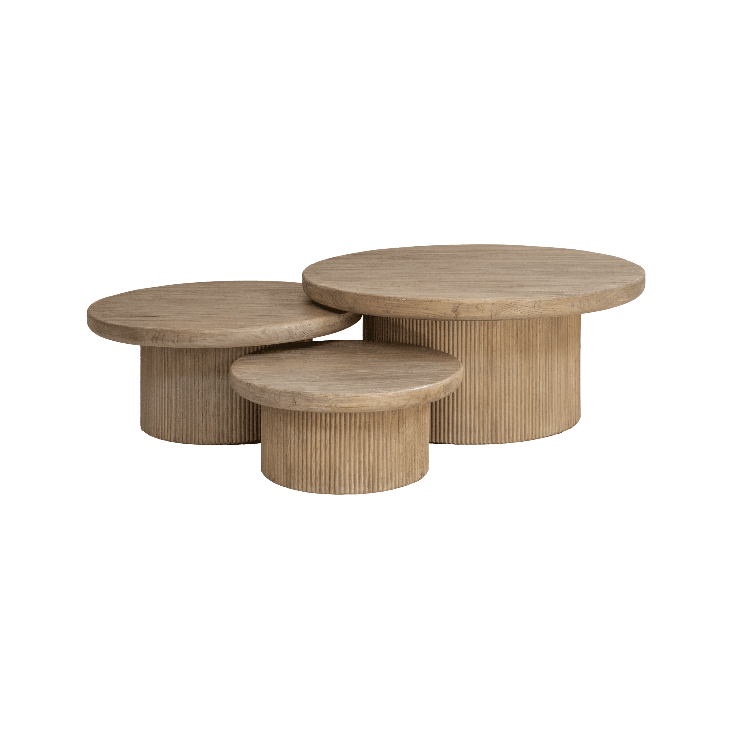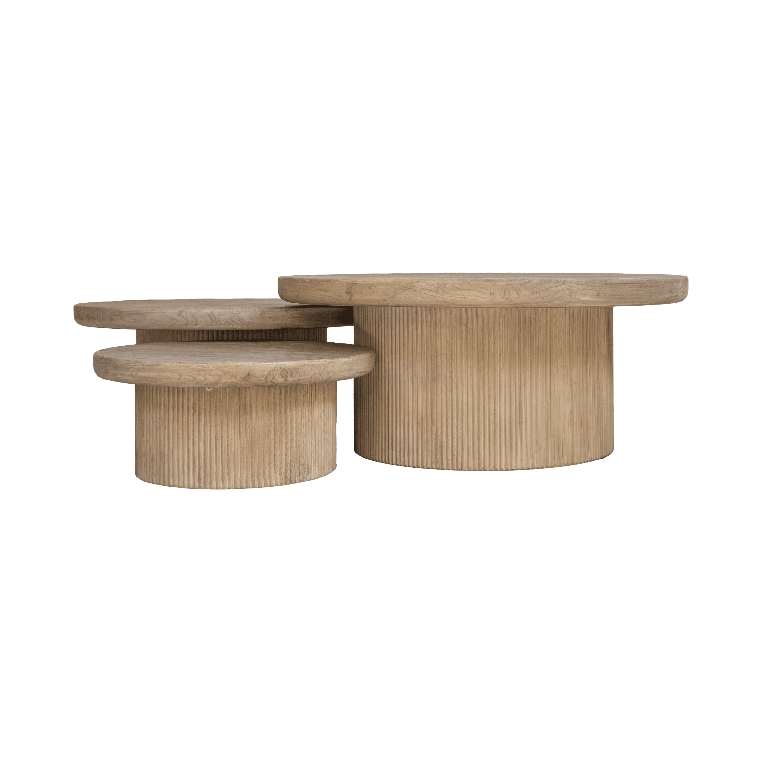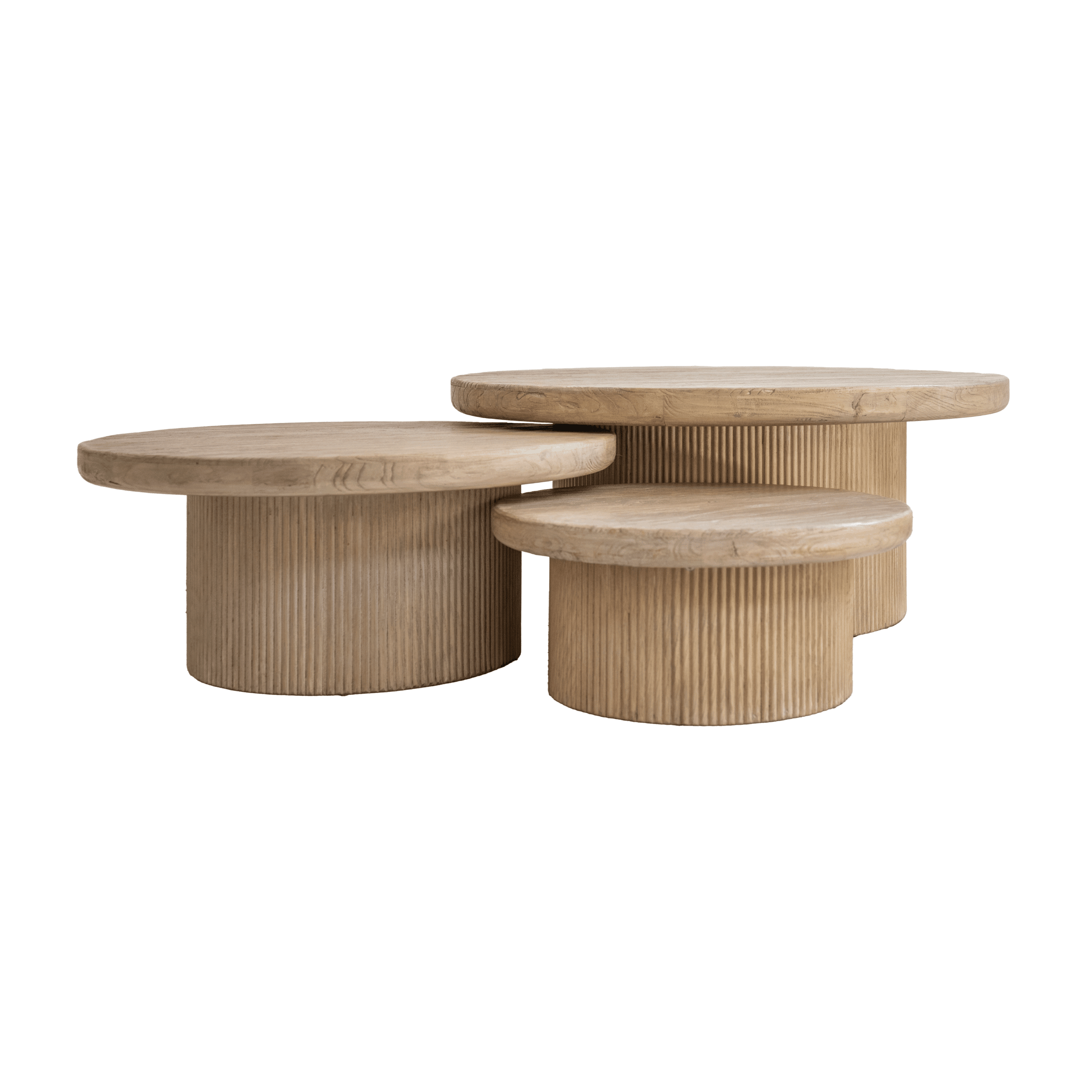 Each item in the Casa Collection has been handcrafted to create a one-of-a-kind piece of furniture. The Paros Coffee Table Cluster is crafted using solid salvaged pine and, with its simplistic design and time-worn wood, will create an organic and rustic aesthetic in your home.